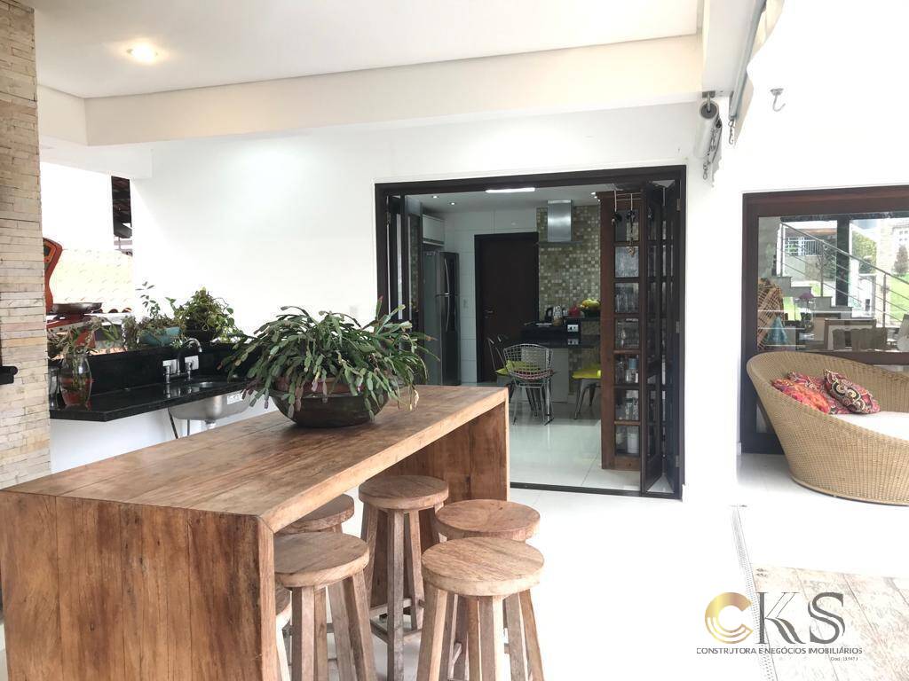 Casa em condomínio alto padrão em Jandira, sala para compor 2 ambientes com vista para a piscina, 4 dormitórios, sendo 3 suítes, duas com jacuzzi, sala com 3 ambientes, lavabo, escritório, cozinha planejada, área de lazer, churrasqueira, ampla piscina e quintal todo gramado com lindo...
