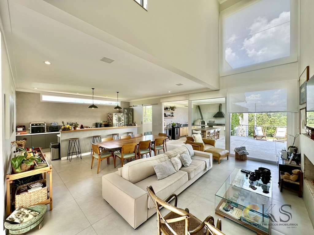Linda casa rústica contemporânea, integrada com muita privacidade e ótimo acabamento. Envidraçada, bem arejada e iluminada. Jardim com paisagismo formado. Hall íntimo no mezanino. Ideal para leitura, escritório. 4 dormitórios, sendo 2 suítes, todos com ar-condicionado e terraços privativos, garantindo conforto e privacidade para toda...